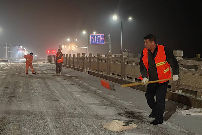 “下雪就是命令!”昨晚几乎与降雪同步,板桥园区满城“橘黄闪耀”。风雪中,瑞南人不畏严寒,坚守岗位,后勤保障加班加点,在连云园区烧香河大桥上,各班组人员协同作战,有指挥、有铲雪、有抛洒融雪剂,他们挥舞铁锹、挥动扫把,全速进行扫雪除冰工作。截止19日凌晨两点,烧香河大桥、程圩高架桥,上下引坡等交通要道区域积雪已基本清除完毕,其他路段正在有序清理。 (金知青)