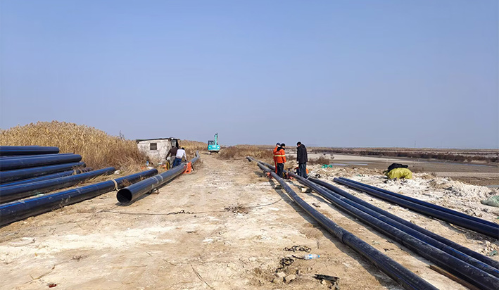 为确保工程顺利实施,供水组一方面积极做好前期准备工作,另一方面经过实地勘察和技术论证,制定了科学可行的施工方案。施工从11月29日起正式启动,过程中,严格按照操作规程安装施工,各司其职。在先期挖掘管路泥土中,存在多地段淤泥地,需转土围堰加固并及时抽水护坡、熔接管道中,附近抛填土车辆较多,干扰大,考虑到安全等问题,及时调整方案,经大伙儿共同努力,铺设管道等各项工作有条不紊地顺利进行。