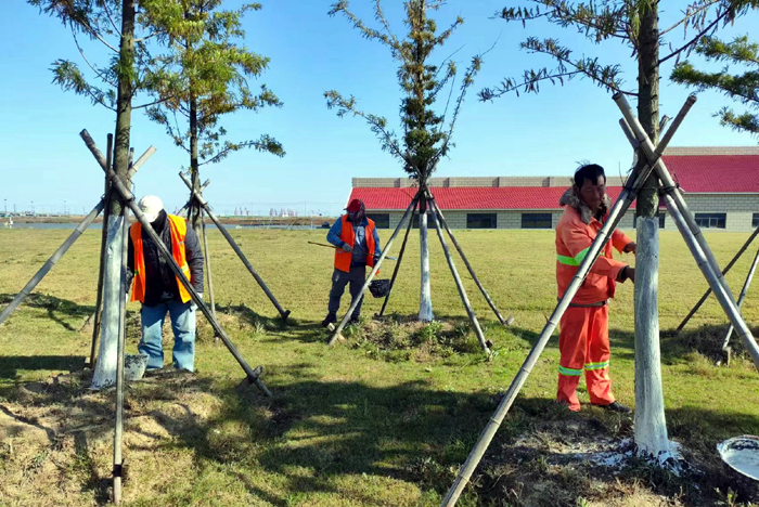 连日来,绿化分公司为为扎实做好冬季树木养护工作,提高树木的过冬、抗病和抗虫能力,开展树木涂白行动,为树木披上“防寒衣”。