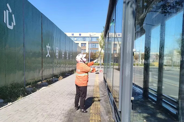 人工清扫不甘落后。针对秋季落叶增多,该分公司徐圩核心区域女子班组近20余名保洁人员,每天拉网式对上海路、南京路、徐圩大道主辅道进行人工清扫,确保新区核心路段环境美丽整洁。日清扫道路平均长达1000余米,打包装运30余包,转运各类树木落叶近20余车。