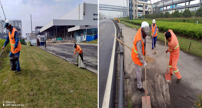 金秋十月,秋风送爽。当徐圩人民沉浸在节日的欢乐之中,有这样一群人仍坚守在自己的工作岗位上,放弃长假,携手奋战道路一线。核区域主要道路、石化园区、车站站台,处处呈现他们辛劳耕劳作工作场景,他们勤劳与担当书写一首首感人劳动赞歌。