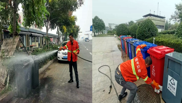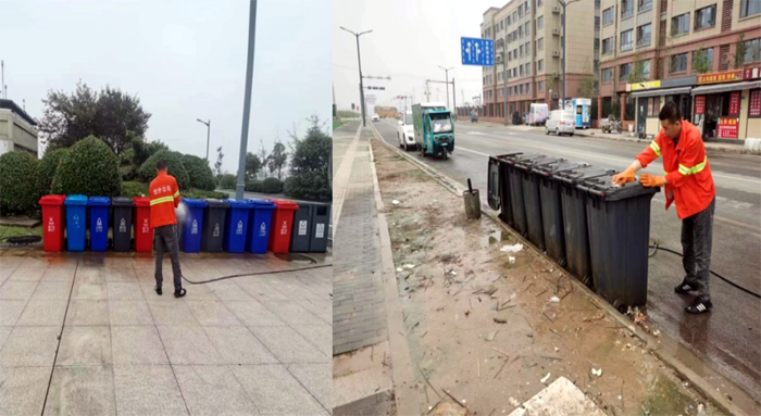 连日来,为进一步提升徐圩新区环境卫生质量,营造干净清爽的“两节”氛围,环卫分公司对辖区内生活垃圾桶、果皮箱进行全面清洗,得到了业主方肯定。